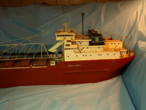 Picture of the Edmund Fitzgerald on rough water, hand painted by artist Don Strother. Measures 8″ wide by 4″ tall and 3/4″ thick. Back and sides are painted flat black with the inscription The Edmund Fitzgerald June 8, 1958 – November 10, 1975 done in silver paint. A “must have” for every Ore Boat enthusiast!